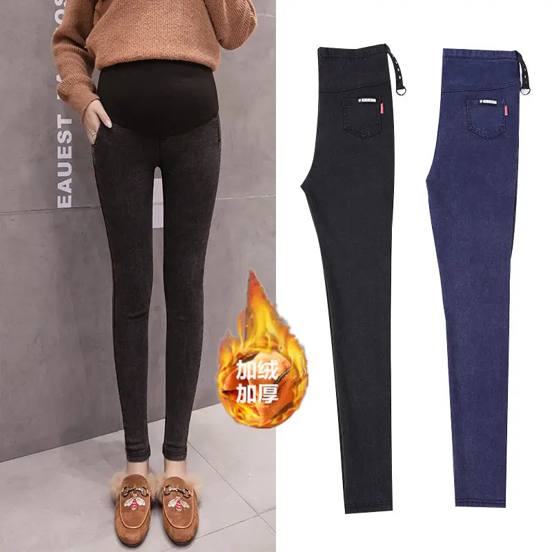 겨울 청바지 임신 한 여성을위한 출산 바지 바지 캐주얼 패션 겨울 양털 청바지 임신 바지 출산 의류
